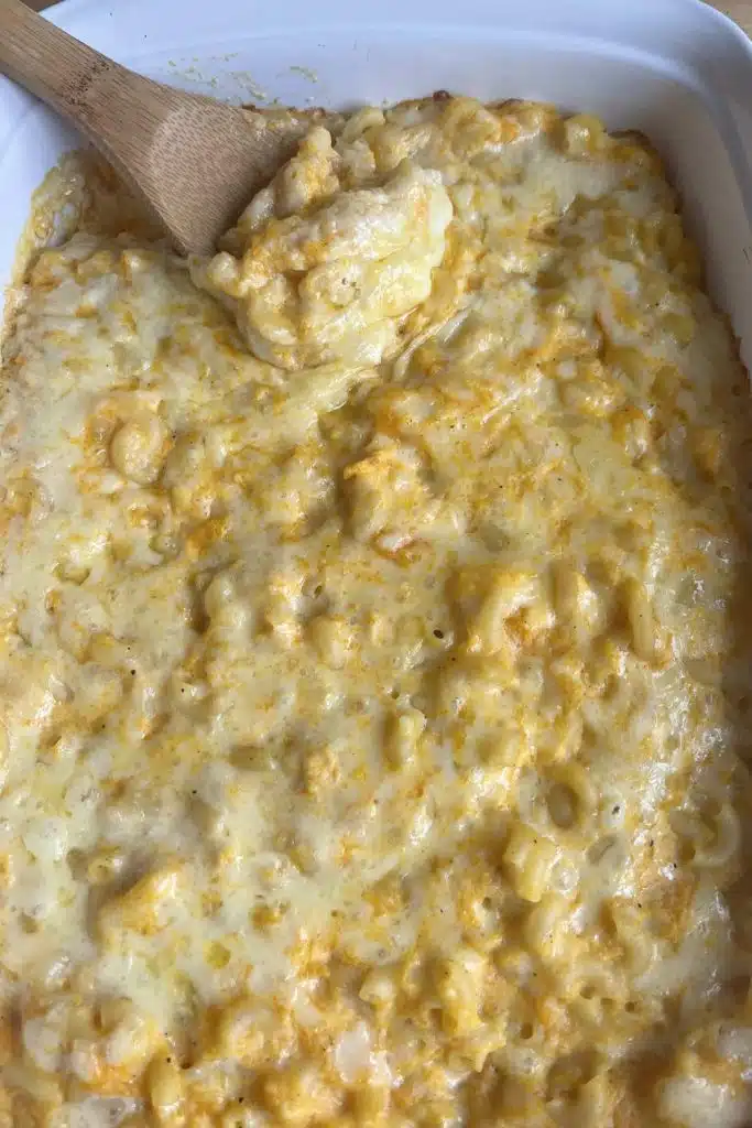 - Bake in the preheated oven for 25-30 minutes, or until the macaroni and cheese is bubbling. Remove from oven and let rest for 5 minutes. Serve warm.