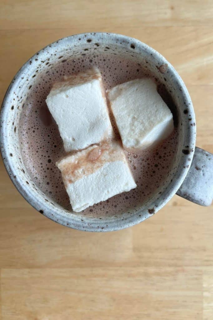 - Pour into your mug, top with some marshmallows, and enjoy! This makes two servings